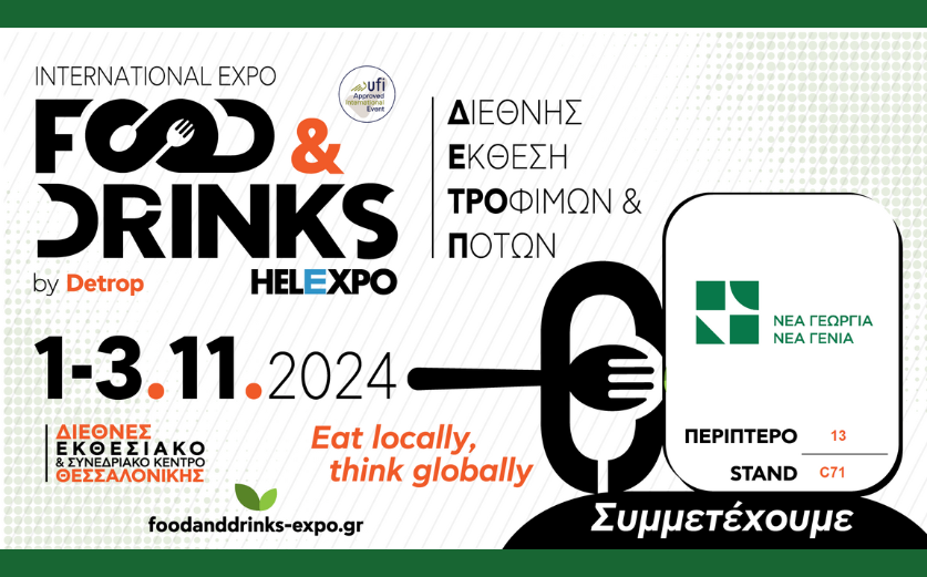 Δυναμική αναμένεται να είναι η συμμετοχή του οργανισμού η Νέα Γεωργία Νέα Γενιά στην έκθεση Food & Drinks International Expo, 1-3 Νοεμβρίου 2024 στην HELEXPO στην Θεσσαλονίκη. Πιο αναλυτικά, η