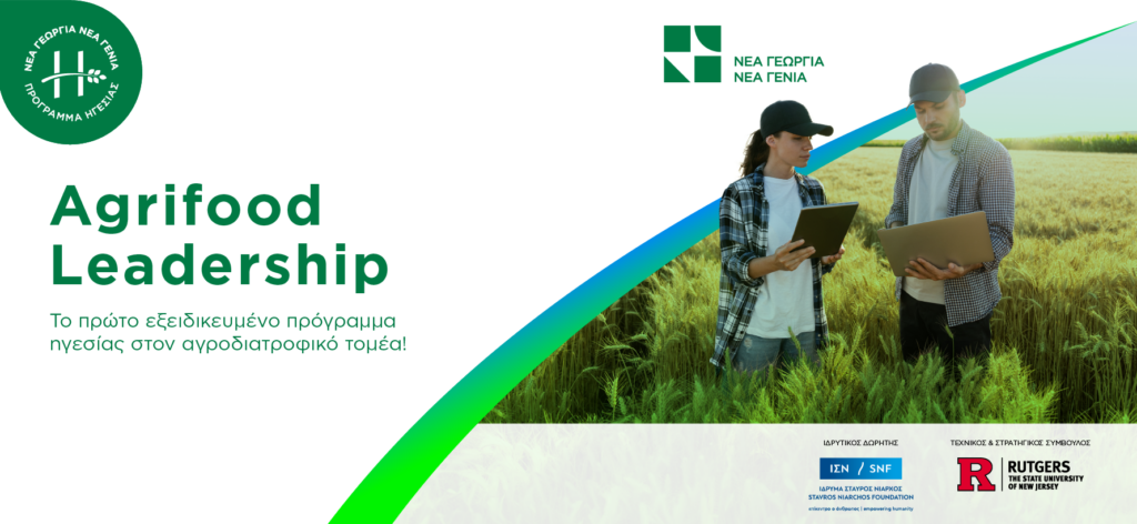Το πρώτο, εξειδικευμένο πρόγραμμα Ηγεσίας στην Ελλάδα στον Αγροδιατροφικό τομέα! Το Agrifood Leadership είναι ένα πρόγραμμα υψηλής ποιότητας εκπαιδευτικού περιεχομένου και αφορά τους επιχειρηματίες, επαγγελματίες, αλλά και τα ανερχόμενα στελέχη του αγροδιατροφικού κλάδου.